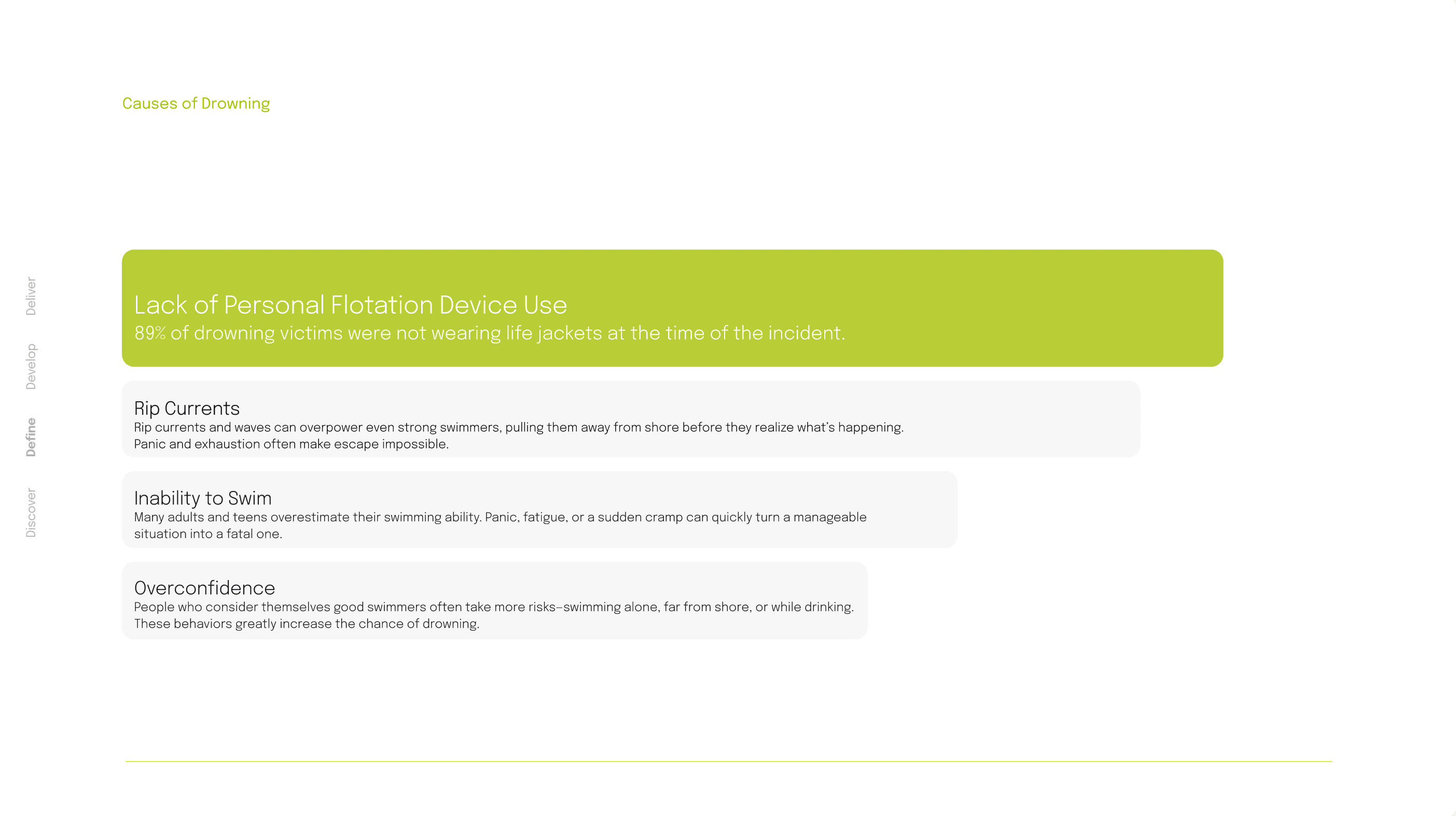 Investigating open water drownings in young adults.